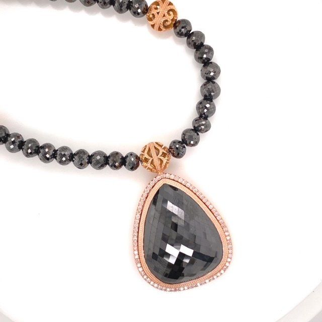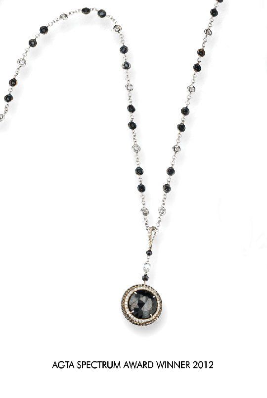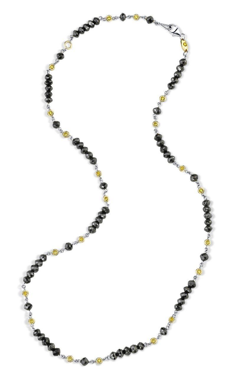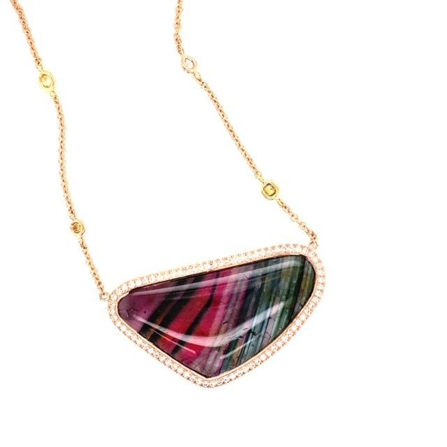 Rare Liddicoatite necklace with Fancy color frame set diamonds in chain.