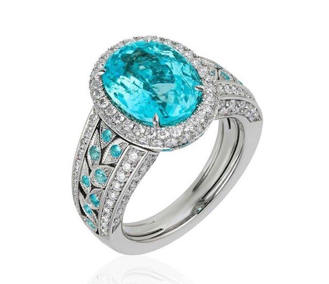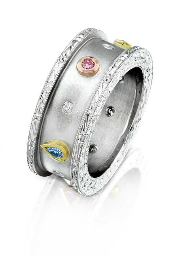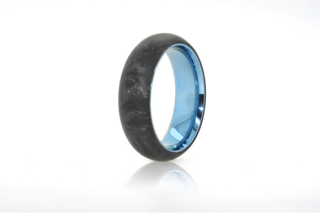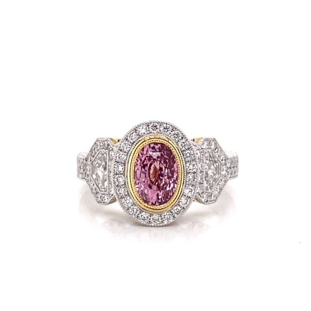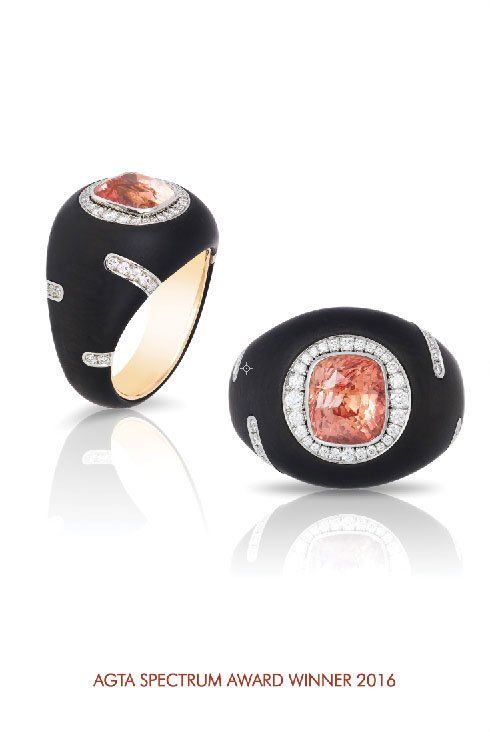 Padparadscha AGTA Spectrum award winning ring with carbon fiber body.