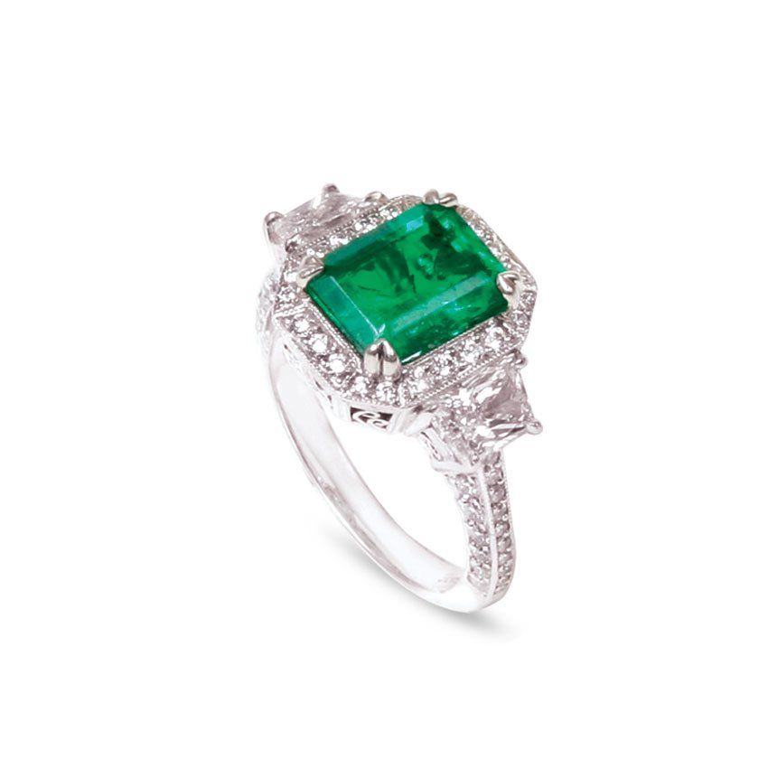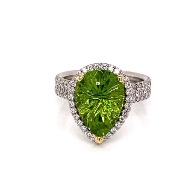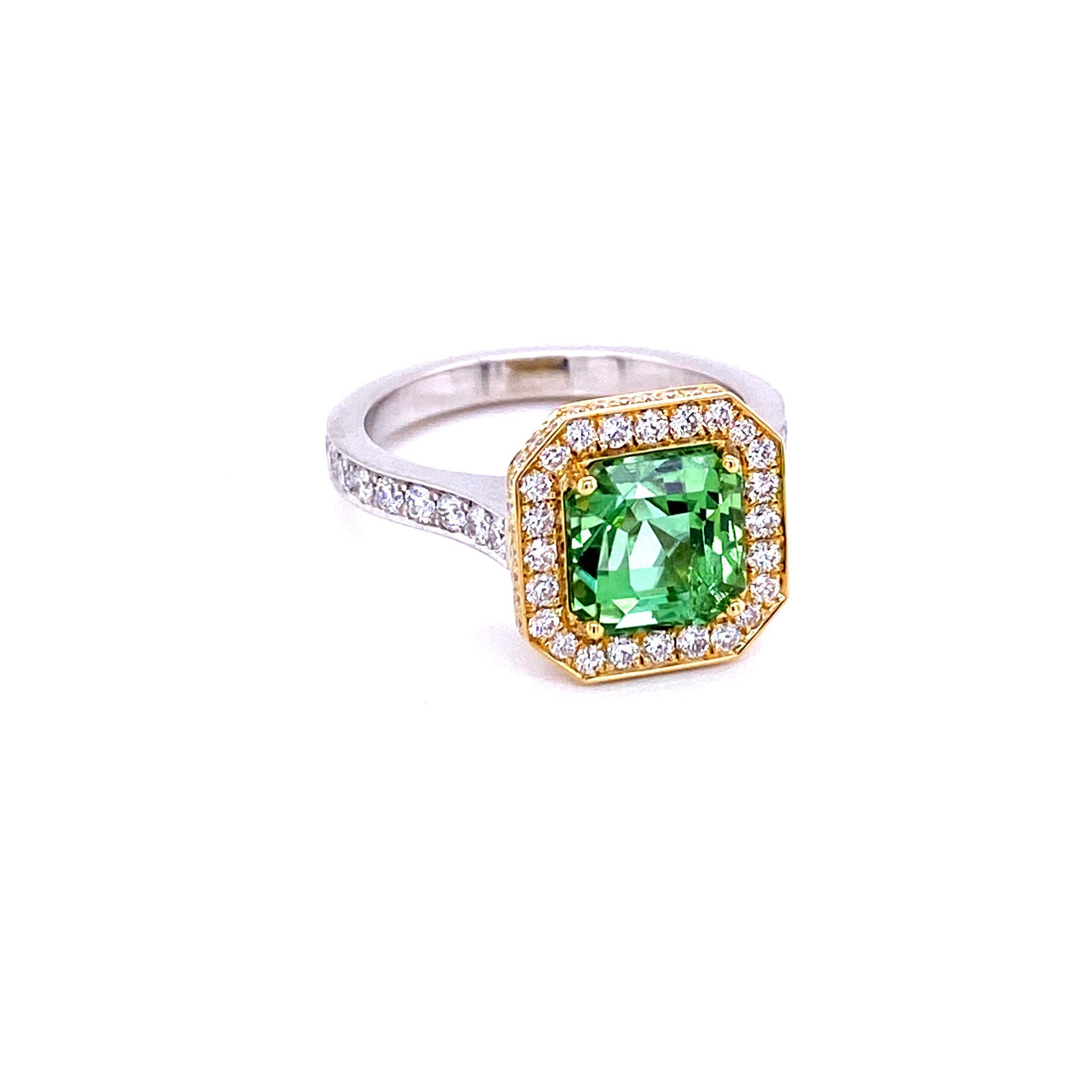 Jolly Rancher Apple green Asscher cut tourmaline ring.
