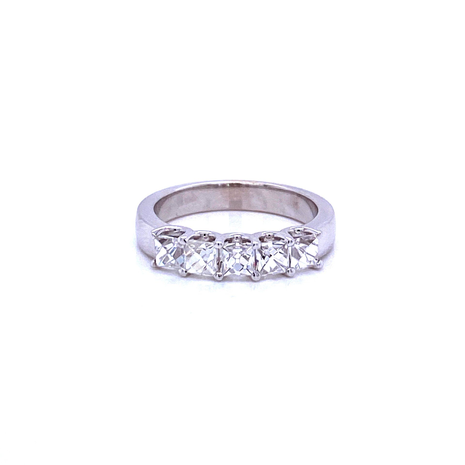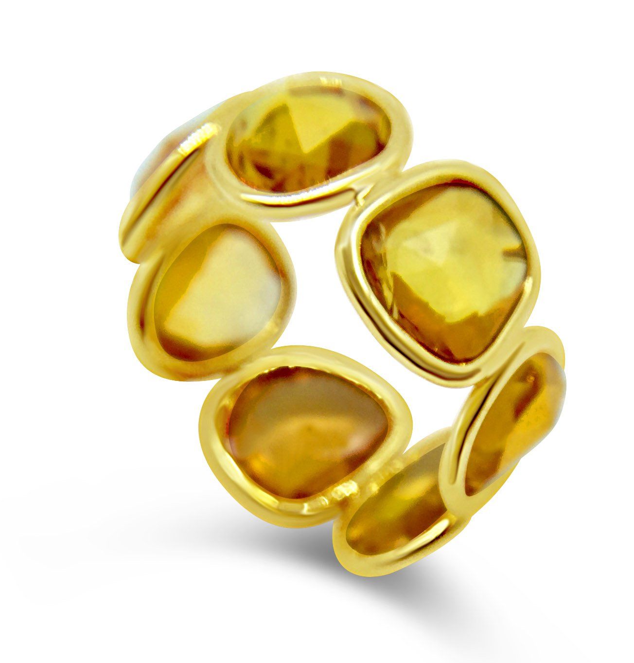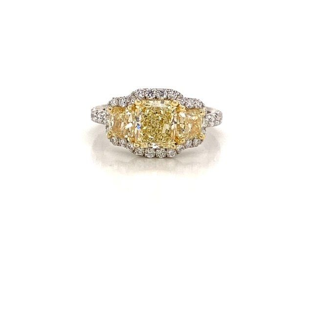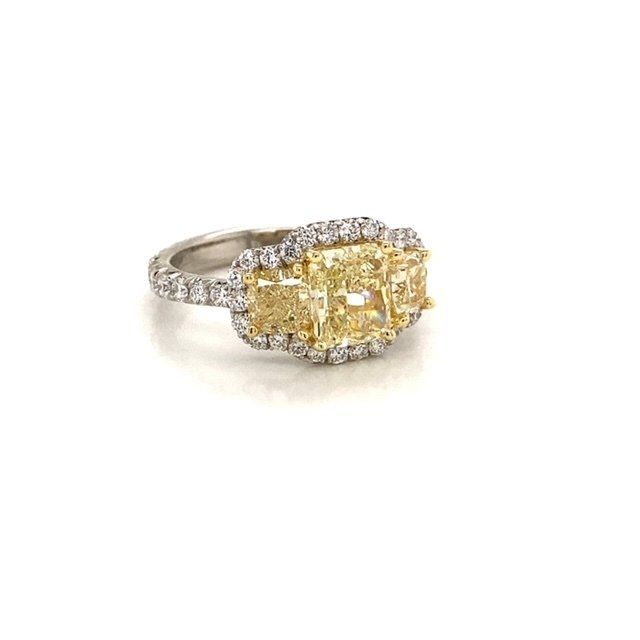 Seven stone Fancy light yellow cushion and Emerald cut diamond ring.