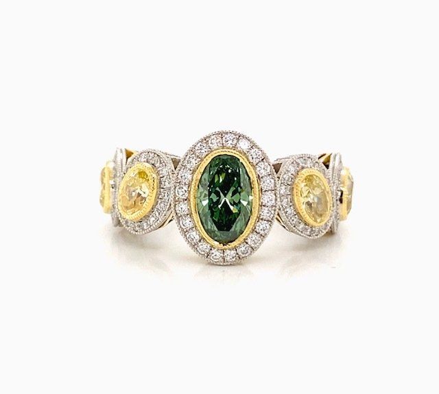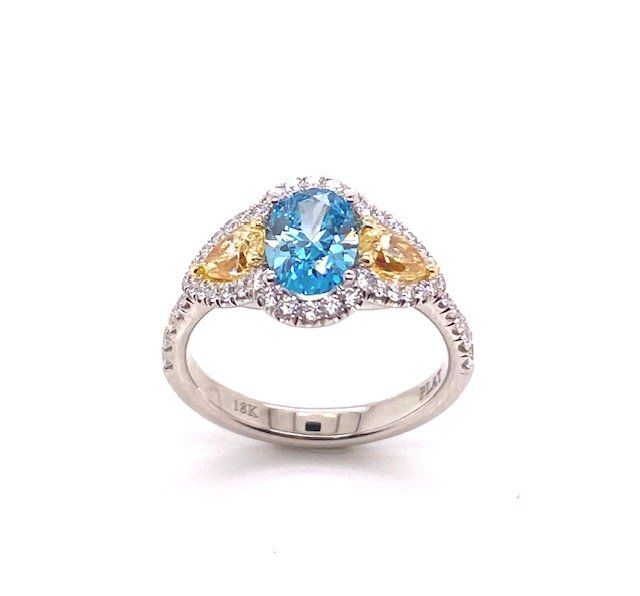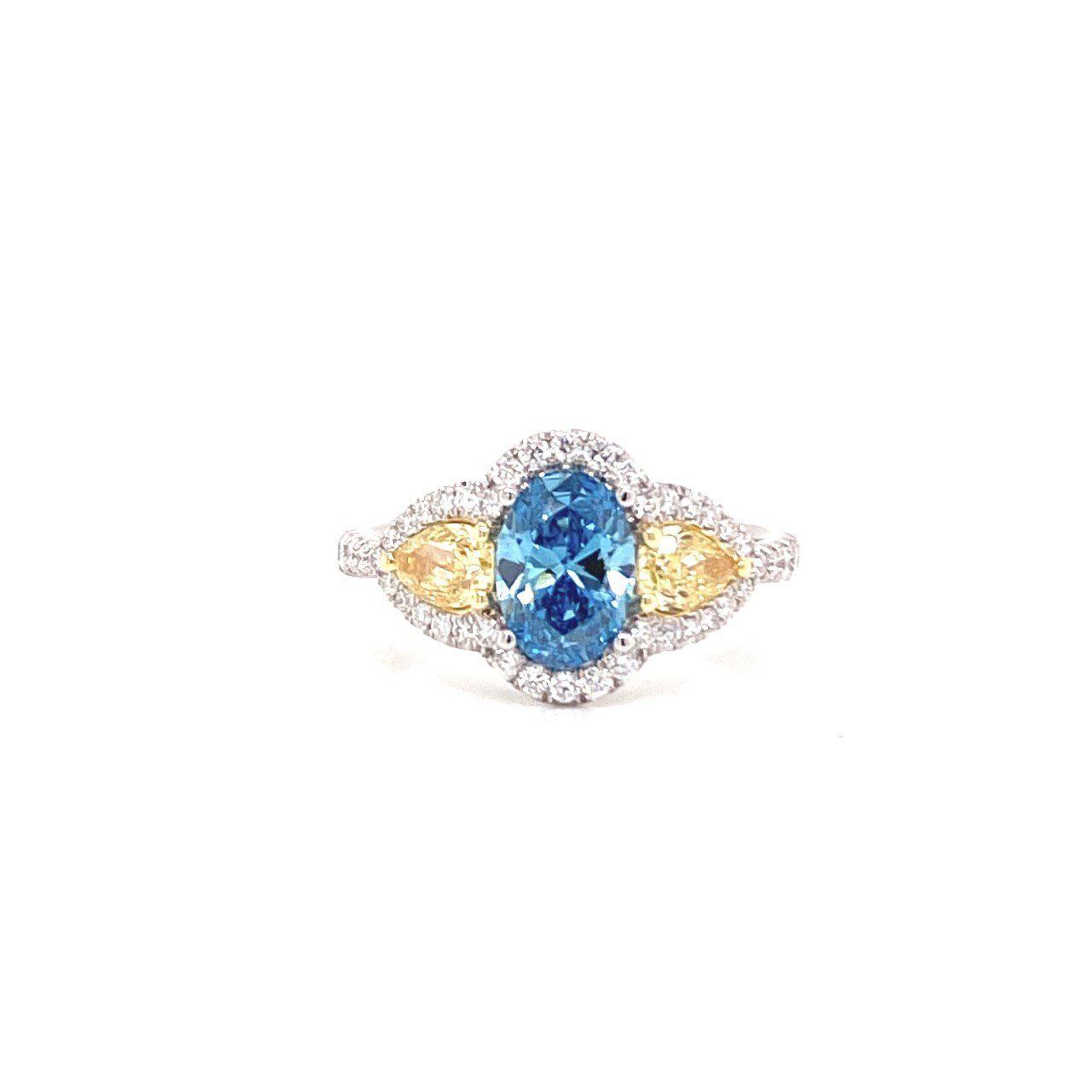 Stunning vivid blue diamond and fancy yellow diamond ring.