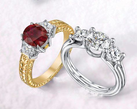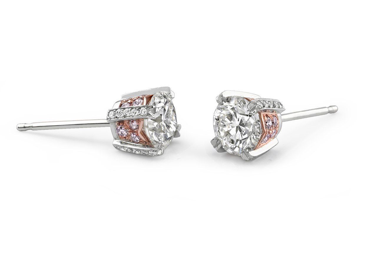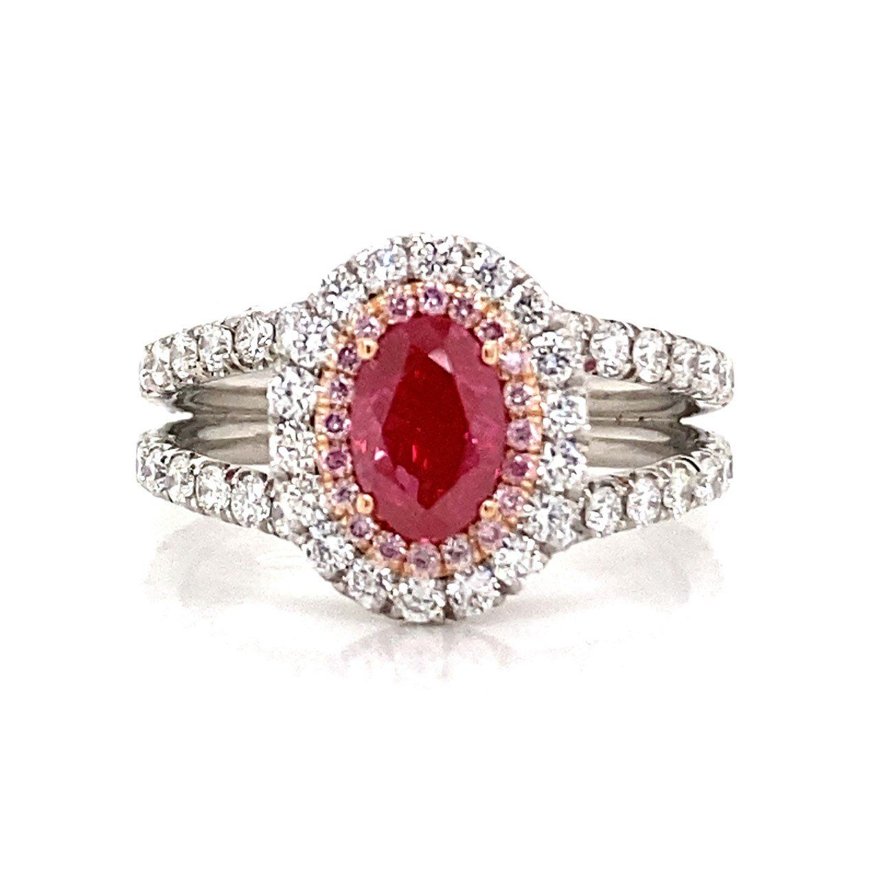 Lab grown red oval diamond and natural Argyle pink diamond ring.
